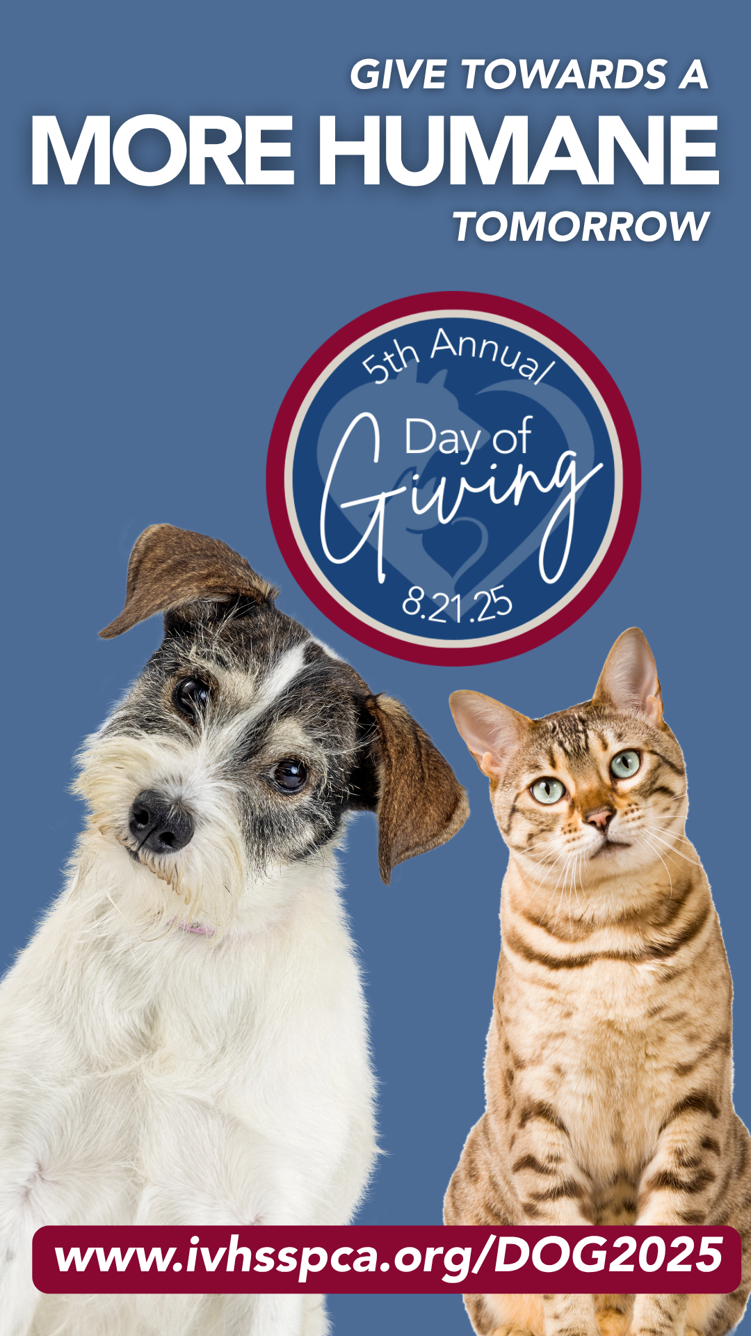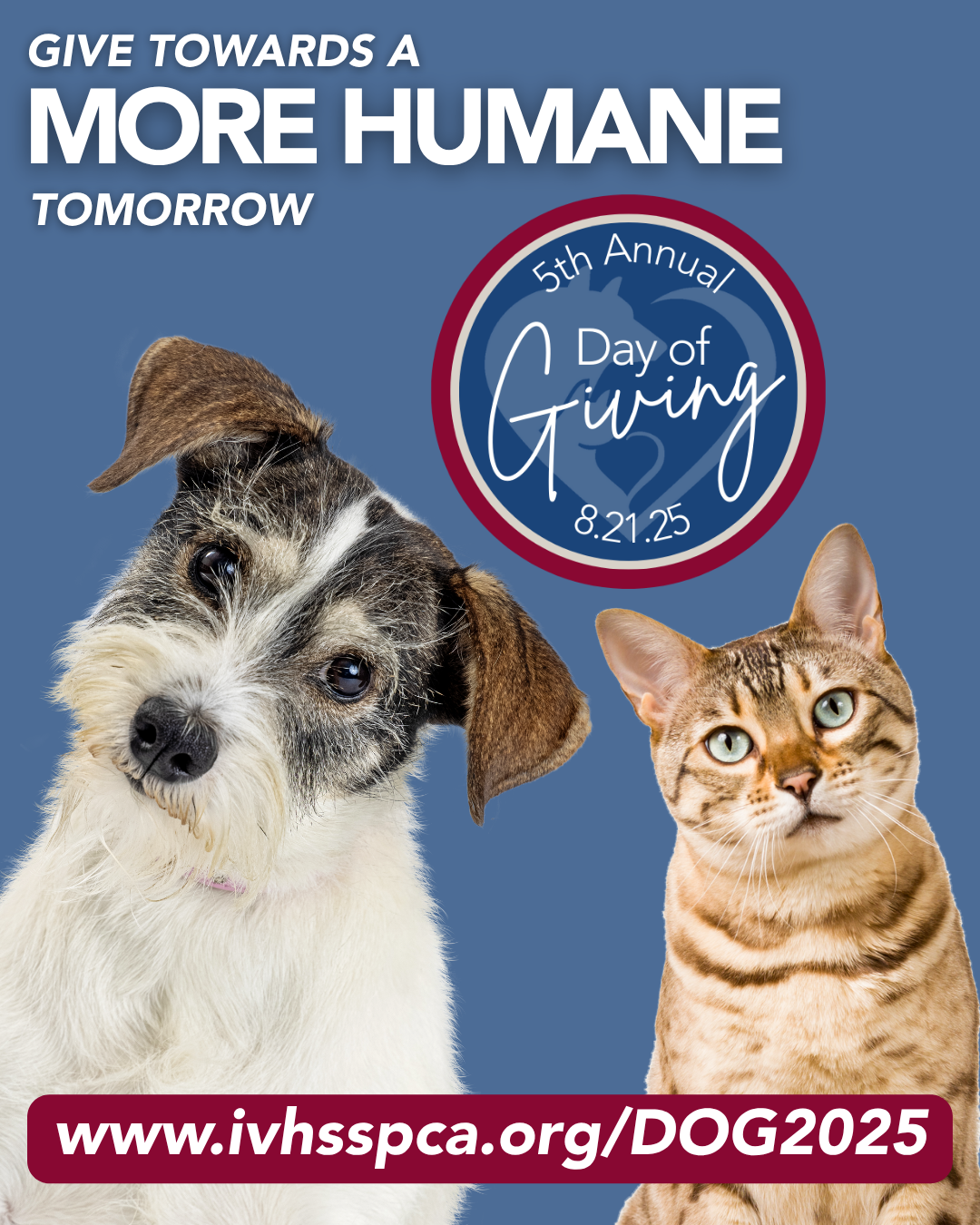Join us for our annual Day of Giving—a powerful day where our community comes together to create a more humane tomorrow. Every donation helps provide the medical care, shelter, and second chances to animals who need us most. Because when we unite in compassion, there’s no limit to the lives we can change.