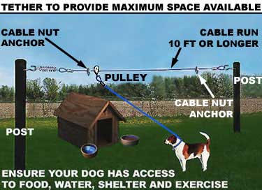 - The tether was attached to a doghouse, tree, fence or any other stationary object.